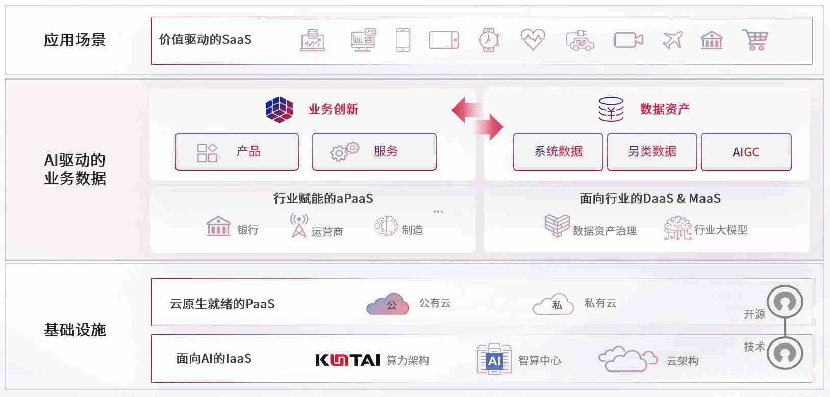 数字时代,,,,围绕企业数字化转型的关键要素,,uppay钱包数码开创性的提出数云融合战略和技术体系框架,,着力在云原生、、、数字原生、、AI原生和信创产业上架构产品和服务能力,,,,为处在不同数字化转型阶段的快消零售、、汽车、、、金融、、、医疗、、政企、、、教育、、、、运营商等行业客户提供泛在的敏捷IT能力和融合的数据驱动能力,,,,构建跨界融合创新的数字业务场景和新业务模式,,,,助力企业级客户建立面向未来的核心能力和竞争优势,,,全面推动社会的数字化、、、、智能化转型升级。。。